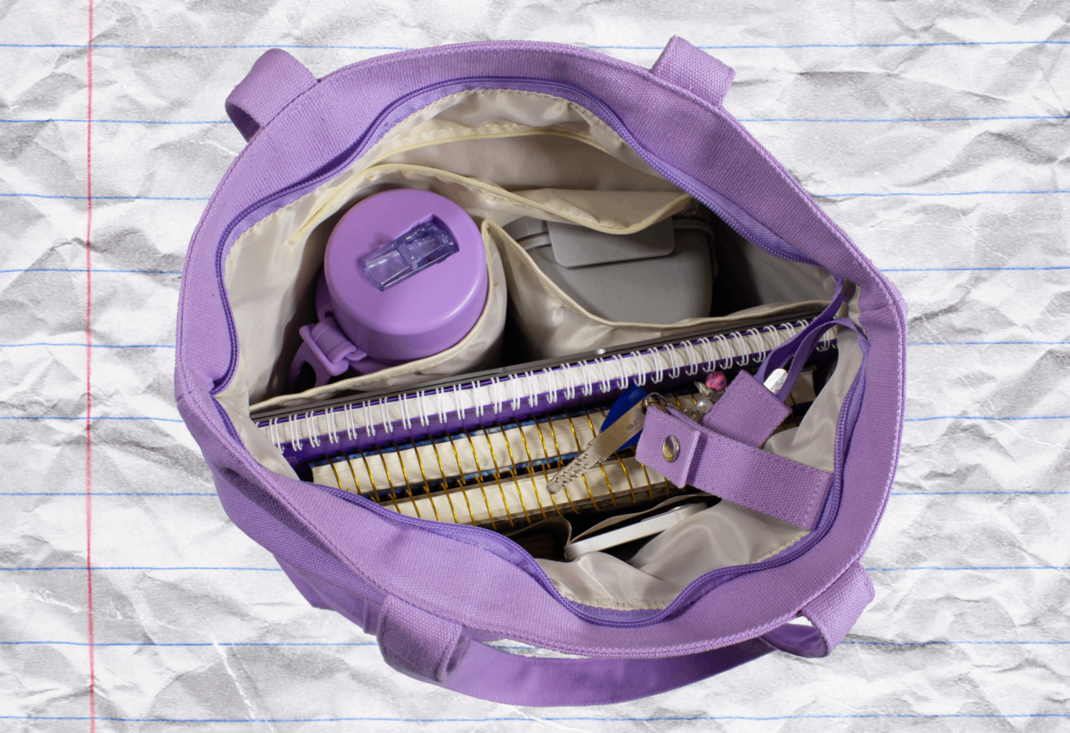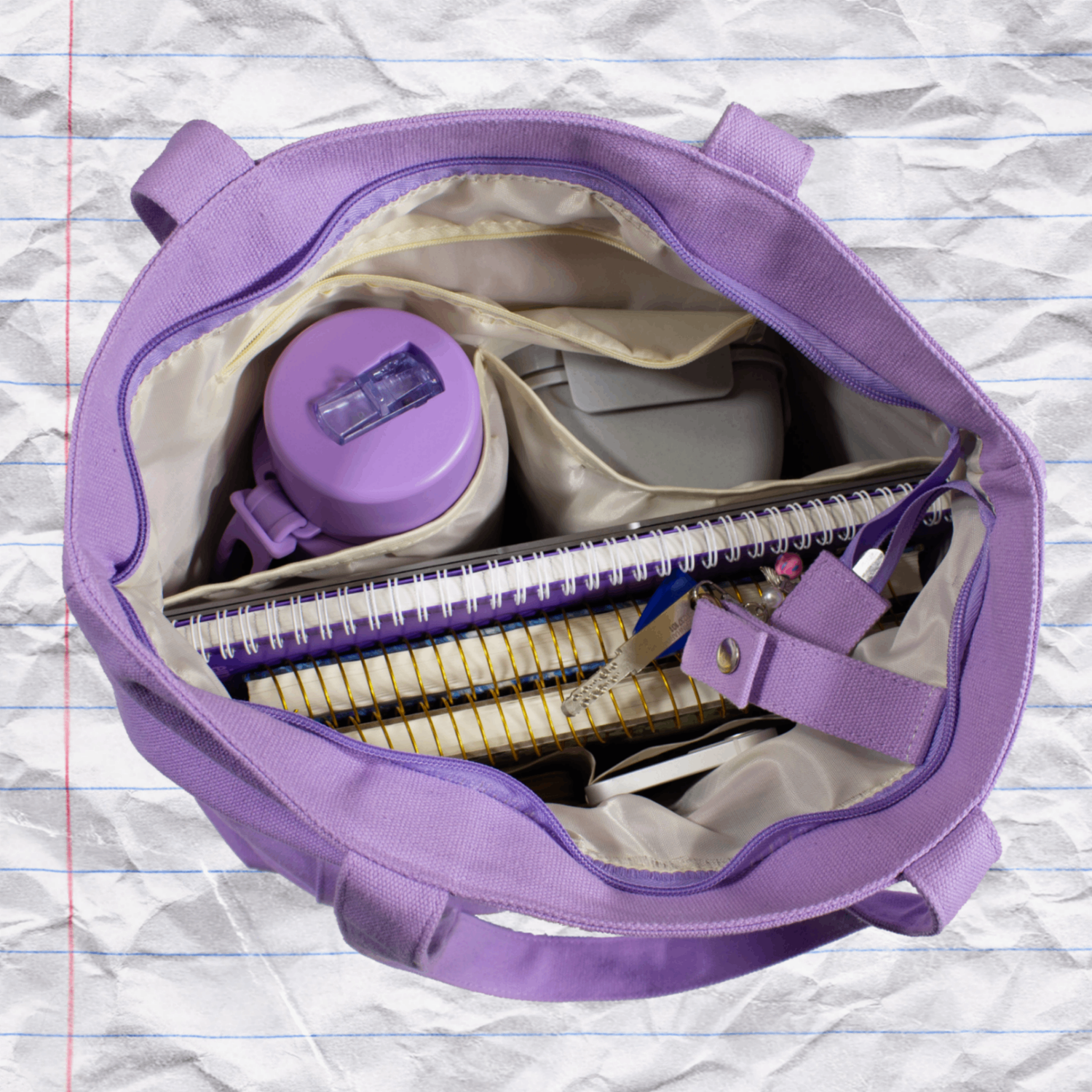 The tote bag has a zipper, large pockets, small pockets, a front pocket which makes staying unorganized practically impossible!
